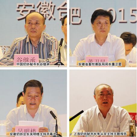 中国奶协副会长兼秘书长谷继承,安徽省畜牧兽医局局长董卫星,上海奶业行业协会原会长庄国蔚、现任秘书长朱从余、顾问陈新先生,江苏奶协秘书长孙宏进,浙江奶协秘书长杨金勇,福建奶协秘书长吴大新,山东奶协会长张志民,上海光明荷斯坦牧业总经理黄黎明,现代牧业总工程师刘仲奎,中国农科院研究员王加启等领导出席开幕式。开幕式由安徽奶协会长吴明楼主持。