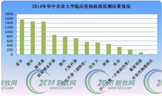 “从病原学方面分析,值得注意的是猪瘟的检出率比三年前有所增高,这是否与腹泻和使用过多蓝耳病弱毒疫苗有关,有待证实。但PCV2、PRRSV、HCV、PRV、PEDV 等病毒病的流行依然严重。细菌性疾病发病最高的依旧是链球菌和副猪嗜血杆菌,另外大肠杆菌排在第三位。”据陈焕春介绍,2014年蓝耳、链球菌分别是病毒病、细菌病中检出率最高的病原体。