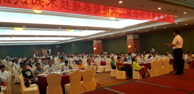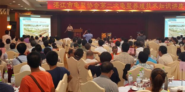在培训班上,董博士围绕“龟鳖生态健康养殖”这一中心,讲授了龟鳖生态健康养殖的基本原理,并着重讲授了益生菌的“占位性保护和净水除臭” 等前沿理论,即定期给龟鳖饲喂益生菌和定期向龟池泼洒益生菌,使龟鳖的胃肠道及龟池的有限空间让有益菌占绝对优势,使有害菌无处立足,从而发挥益生菌的“占位性保护”作用和“净水活水除臭”等作用;同时通过益生菌的调节作用,使龟鳖的内环境(龟的胃肠道)和外环境(龟池)达到平衡而统一,这样就可预防和减少龟鳖疾病的发生率,并可促进龟鳖生长及提高繁殖力。这种“以菌净水,以水养饵(生物饵料),以菌防病及促长” 的生态健康养殖技术和模式,实践证明是可行的。它不仅可以净化水体、稳定水质,使养殖全过程不向外排放污水,减少环境污染;而且可抑制致病菌滋生,预防疾病,从而达到不用或少用抗生素的目的,为保护环境及促进养龟业健康发展指明了方向,这对个人和社会都有好处。大家一致认同董博土提出的“生态健康养殖”是今后龟鳖养殖业必走之路。