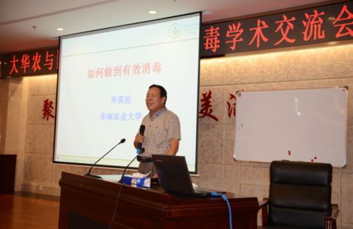 会上,毕英佐教授作了题为《如何做到有效消毒》的专题讲座,从养殖场的生物安全说起,深入浅出地剖析了消毒前、中、后全过程要注意的重要事项,确保消毒到位,保证动物健康和生物安全。毕英佐教授指出,对所有养殖场来说,生物安全实践都是健康管理的重要部分,而做好消毒,则是确保养殖场生物安全的关键屏障。要做好消毒,毕英佐教授建议,必须要认清消毒工作中常出现的如:消毒剂浓度越大效果越好、消毒时温度越高越好、配伍的消毒剂越多越好、采购的消毒剂越贵越好、重视舍内消毒而轻视环境消毒等七大误区;进而采取有效对策提高畜禽养殖场的消毒效果:第一,选择广谱高效的消毒剂;第二,确定适宜的消毒方法;第三,按要求科学稀释消毒液;第四,设计合理的消毒程序;第五,消毒前一定做好清洗工作;第六,严把人员、车辆、物品消毒关。正值秋冬季节,毕英佐提出,做好秋冬消毒的关键在于及时清扫棚舍、选择高效消毒剂、现配现用消毒药、使用高压动力喷雾器喷洒药物,并要把握好喷雾消毒的频率和喷雾量;同时要严格控制进出口,防止交叉感染;鸡群在免疫接种前后2小时内禁止带鸡消毒。