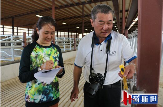 杭州萧山富伦奶牛场孙总和何总亲自丈量牛颈枷