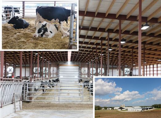 牧场牛舍由专业设计公司设计,投资100多万美元,采取隧道式通风,24小时不停运转,牛舍屋顶采用能开能关的通风口,保证了牛舍的凉爽和空气清新,空气流通性好,牛舍自然没有蚊蝇。