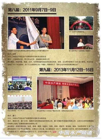 《世华会的故事》一册,收录了从1991年世华会的发起人林鼎教授与庄健隆博士在美国见面初步落实世华会的框架,到2013年第九届世华会闭幕这23年来的种种瞬间。翻开《世华会的故事》,我们会惊喜发现许多行业知名人士在世华会的成长历程,从一个青涩怕生的研究生变成享誉国内外的学术大家;从一个雄心壮志的年轻小伙成为水产饲料企业的行业领导;从一个娇小美丽的小姑娘成长为知识渊博的学术权威……