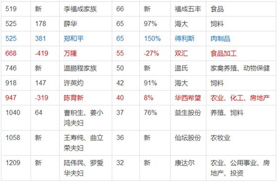 小编从百富榜单中收集了畜牧行业百富前20名,从表中可以看出畜牧行业富豪新上榜4位,正邦科技董事长林印孙的财富涨幅最大。