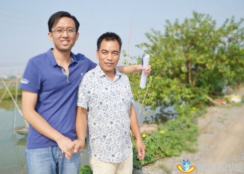 养殖能手验收专家、通威股份水产技术总监张璐博士(左一)和梁建成老板
