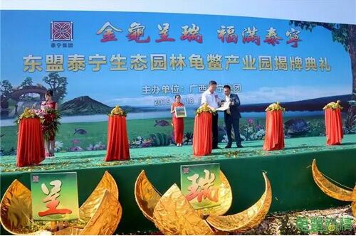 10月18日早上,在广西南宁市西乡唐区“美丽南方”石埠大道368号东盟泰宁生态园林龟鳖产业园举行开园典礼暨揭牌仪式,又一产业园的成立标志着广西龟鳖产业迎来了又一大发展黄金期。龟友网作为支持单位出席了此次揭牌典礼。