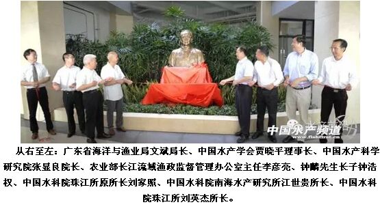 在会议进行之前,首先是一个简短的钟麟先生铜像迁址仪式。为了更加真切地缅怀钟麟先生,常务会议决定将钟麟先生的铜像由2003年的原址迁至新落成的实验室大楼。由钟麟先生儿子钟浩权先生,钟麟先生“鲢鳙鱼亲鱼生理生态培育法”课题组成员、原珠江水产研究所所长刘家照同志,农业部长江流域渔政监督管理办公室主任李彦亮同志,广东省海洋与渔业局局长文斌同志,中国水产科学研究院院长张显良同志,中国水产学会理事长、原南海水产研究所所长贾晓平同志,南海水产研究所所长江世贵同志,中国水产科学研究院副院长、珠江水产研究所所长刘英杰同志为钟麟先生铜像揭幕。刘英杰作简要发言,他表示:“钟麟先生的铜像能激励我们,我们感受到了自己的渺小和不足,不敢再有任何的懈怠和自满。”并表示,一定把珠江水产研究所建设好,绝不辜负钟麟先生的殷切期望。