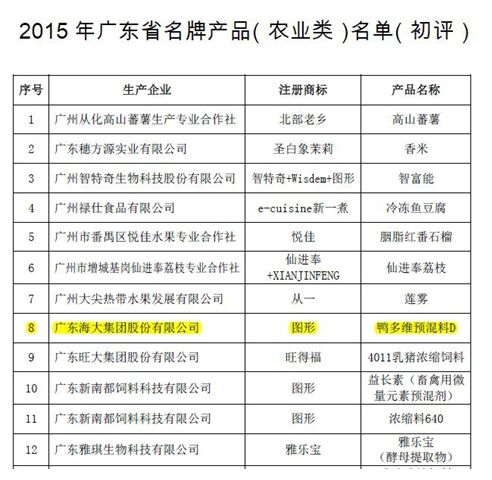 近日,从广东省农业厅获悉,根据《关于表彰2015年广东省名牌产品(农业类)生产企业的决定》(粤农〔2015〕214号),由广东省名牌产品(农业类)推进委员会办公室、广东省南方名牌农产品推进中心联合主办的2015年广东省名牌产品(农业类),已完成评选工作并公示完毕。
