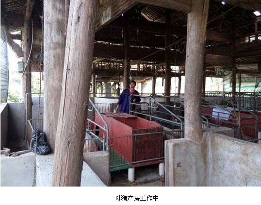 来到郑老板的猪场时,此时的他正在母猪产房中正照看着母猪产仔观察情况。为了不耽误郑老板的工作笔者一行就在猪场外等待,郑老板的猪场建立在一片小山坡上,前后有4间栏舍,错落有致,有大有小,从栏舍的外观上看使用的年限也已经有不少年了。不久后忙完了工作的郑老板引我们到家中落座,高兴的告诉我们今天猪场有3头母猪产仔,每头母猪产仔11头,合计33头小猪崽,体态都很均匀、品相都不错有很大的希望可以全部成活。