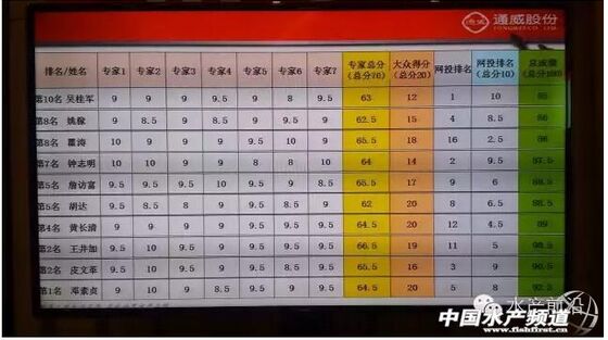 “此次评选虽然只有非常少的一部分,但代表了非常出色一代水产人,取得了非常好的成功。这些成功的特点表现在他们能接受先进的理念和模式,在自己的养殖过程中,善于总结,产销结合,善于懂得有限面积与体积有效利用,而且都舍得投资。另外,在使用新模式如365模式的情况下,少用化药,不乱用药,这也诠释通威鱼的优点。” 现场专家评审四川农业大学汪开毓教授点评。