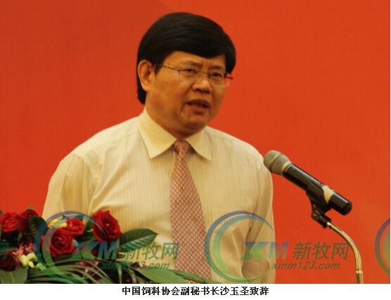 中国饲料协会副秘书长沙玉圣发表致辞。他称,近年虽然国家经济下滑,但饲料还是保持了平衡增长。2014年,全球饲料总量约为8.17亿吨,中国为