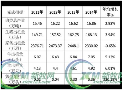 虽然全区总体生猪出栏呈现下降趋势,但贺州生猪出栏2011年到2014年的年均增长率为3.94%。而家禽出栏则出现了下降。