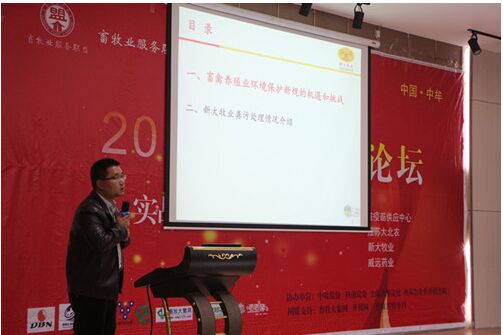 新大牧业项目发展部经理刘矿在论坛会议主要向大家讲解了畜牧养殖业的环保问题,详细地解读了当前国家最新的畜牧业环保政策,同时就新大牧业猪场环保措施、做法及新大牧业在环保方面取得的成果向大家一一做了展示。