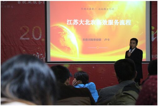 卢总(江苏大北农农香河南事业部)为大家讲述了《江苏大北农高效服务模式》,向大家展示了江苏大北农优秀的服务团队、对猪场内大北农一线服务人员的培训及如何让方案落地等。
