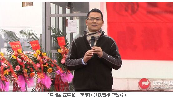 傲农集团副董事长、西南区总裁黄祖尧在成都慧农开业典礼上致辞。他对成都慧农的成立表示祝贺,希望成都慧农能够秉承傲农文化,志存高远,有效整合内外资源,成功创业。同时,他要求西南区、四川事业部、四川傲农羊安基地为成都慧农发展提供帮助,助力成都慧农各项事业取得快速突破。