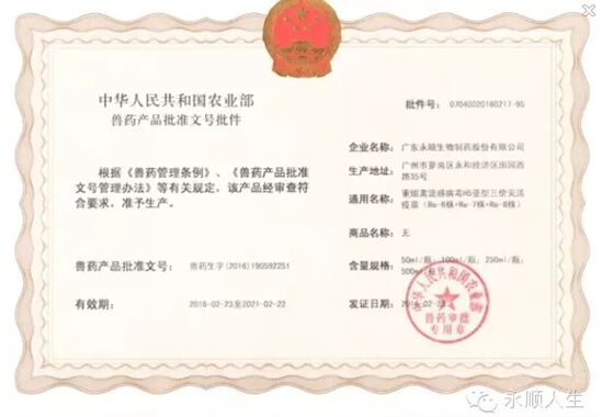 2015年12月16日农业部办公厅公布“农业部办公厅关于调整高致病性禽流感疫苗种毒的通知”【农办医(2015)51号】。通知的主要内容:为提高疫苗与流行毒株的匹配性,更好地防控禽流感,经研究,我部决定调整高致病性禽流感疫苗生产种毒;国家禽流感参考实验室组织完成Re-8株种毒发放工作;种毒调整后,疫苗为重组禽流感病毒H5亚型二价灭活疫苗(Re-6株+Re-8株)和重组禽流感病毒H5亚型三价灭活疫苗(Re-6株+Re-7株+Re-8株),用于预防H5亚型禽流感病毒引起的禽流感;高致病性禽流感疫苗生产企业领取种毒后,要按照兽药管理有关规定及我部发布的产品生产检验规程、质量标准组织生产和检验活动,并向中国兽医药品监察所送3批重组禽流感病毒H5亚型三价灭活疫苗(Re-6株+Re-7株+Re-8株)样品进行效力检验。根据“农办医(2015)51号”的通知,2015年12月21日各高致病性禽流感疫苗定点生产企业在哈尔滨兽医研究所统一领取了禽流感H5亚型Re-8株种毒。