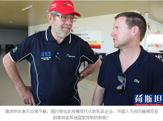 “本次我们参观的三个点,从秋实草业到现代牧业到旗帜乳业,让我们对先进的中国乳业有了全新的认识,如此规模化、现代化、一体化的生产加工作业,所用到的生产设备与技术水平、产品质量标准都与国际市场直接接轨,甚至超出国际标准。但是有一个我们“特别不理解”的现象,那就是为什么中国人还是争着抢着疯狂跑到我们澳洲或者是其他国家抢购奶粉呢?”