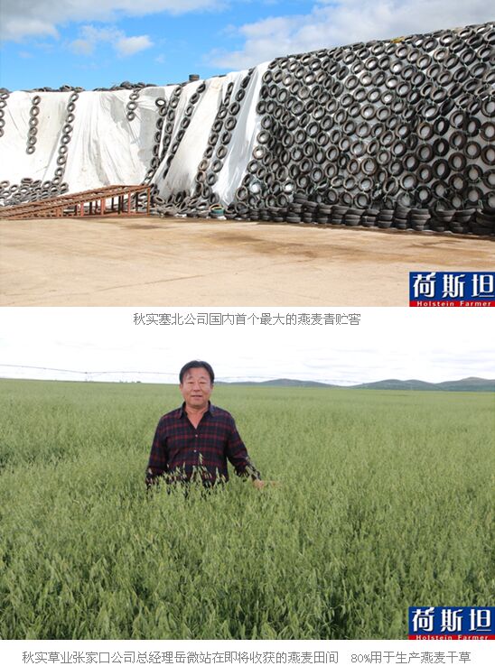 “种养加”之秋实塞北风光 敢于创新实践 秋实草业可以说是目前人工草地种植面积最大的一个公司。秋实草业张家口公司于2011年注册,2012年开始种植优质燕麦,基地种植和订单种植相结合,每年种植面积为30万亩,2016年秋实塞北公司80%的产品是燕麦干草,其余的生产制作为燕麦青贮,燕麦青贮主要用于离公司100公里以内半径的牧场使用。公司除了生产燕麦干草和青贮,还结合当地资源利用其他秸秆项目进行生产加工,作为粗饲料的补充供给牧场。