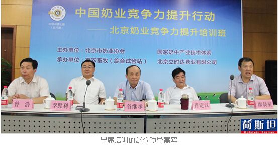 7月29-30日中国奶业竞争力提升活动——北京奶业竞争力提升培训班在北京正式开班。培训由北京奶协、国家奶牛产业技术体系共同主办,首农畜牧(综合试验站)、北京立时达药业联合承办。为提升奶业竞争力,推进奶业持续健康发展做出努力;共同探讨奶业形势,探寻降低成本、提高牛奶质量、减少奶牛热应激的有效方案。