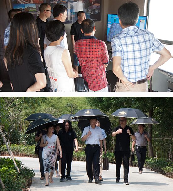 在公司领导的陪同下,曹新安副厅长一行参观了美保龙新美系大体型种猪育种基地的生产区实时监控系统和生态循环区(污水处理中心、自动喷灌系统、人工湿地等)。