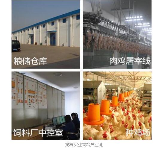 作为一家肉鸡全产业链知名企业,龙海实业下属:现代化饲料厂1座,年生产能力50万吨;粮储中心1处,年储粮能力20万吨;种鸡场7处,现存栏父母代肉种鸡52万套;孵化场2处,年提供上市鸡苗六千万羽;清真食品加工厂1处,屠宰加工清真鸡冷鲜产品20万只/天。公司实行“公司+基地+农户”:公司自养场存栏肉鸡210万只;现有肉鸡合作养户600多户、平均养殖能力为1.5万只/批/户(6万只/年/户)、年回收肉鸡5000多万只,成活率为94%-95%。