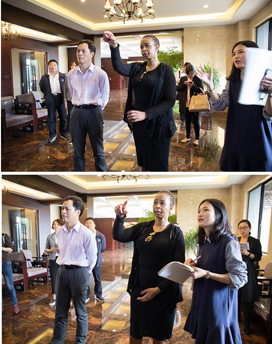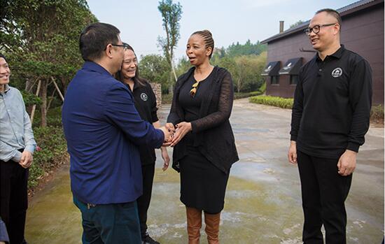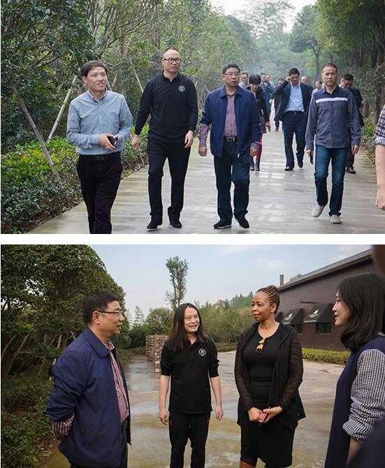 在生态循环区,时值前来美保龙调研视察工作的婺城区区长郭慧强热情接待了凯佩伊厅长一行,在得知凯佩伊慕名而来美保龙,郭区长非常高兴地向凯佩伊介绍到美保龙种猪育种基地无论是在种猪育种还是在环保方面都做的非常出色,希望借此契机通过寻求一个点来带动新的中非合作途径,深化两市的经贸合作。凯佩伊厅长也表示美保龙种猪育种基地整个前瞻的创新理念、合理的生产布局和高度的环保责任感令她为之震撼,这种养殖模式非常值得借鉴和推广。