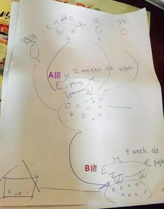 (3)B猪采食量适当降低,否则影响断奶后发情,A猪采食不受限制;周计划中,他们一般会预留5-10%左右的空产床,做为产仔高的猪的寄样;(下图为专家画的寄样流程图)