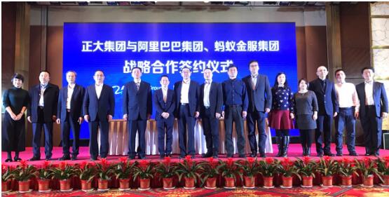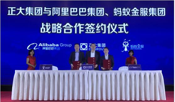 谢毅先生、孙利军先生、袁雷鸣先生分别代表正大集团、阿里巴巴、蚂蚁金服签约。据悉,三方将形成定期会晤、信息通报及日常工作机制,共同研究商讨合作的具体事宜,推动全面战略合作伙伴关系不断发展和深化。