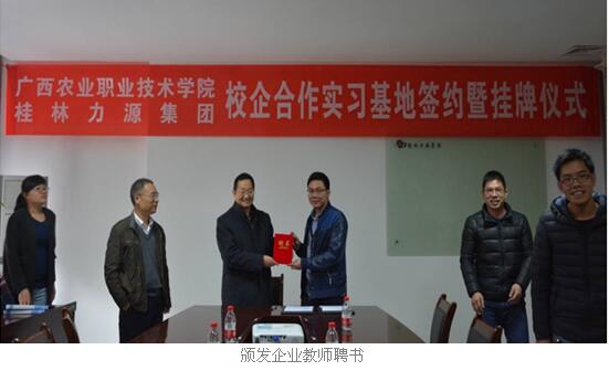 2016年12月23日,广西农业职业技术学院动物科学技术系教学实习基地揭牌仪式在集团总部举行,集团总裁邓总、招聘邓经理、各猪场场长,广西农业职业技术学院动物科学技术系主任李军成、副主任莫文湛及部分师生参加了揭牌仪式。