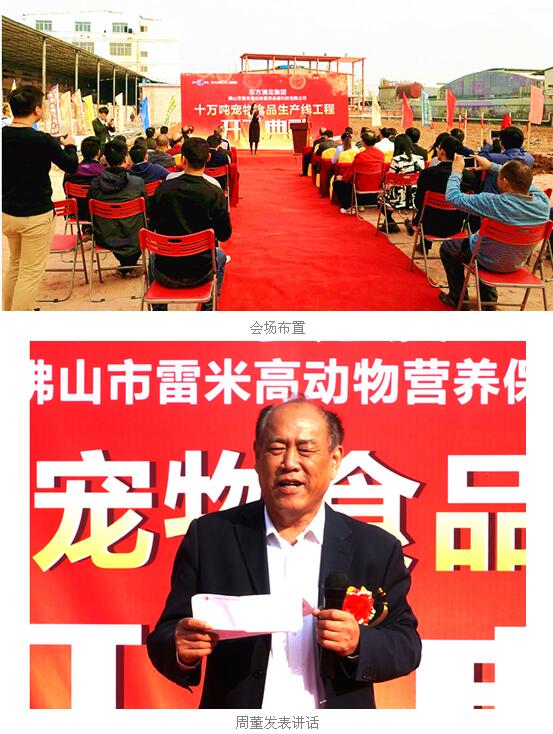 仪式一开始,首先雷米高执行董事周德成先生发表了精彩的致辞。周董不仅介绍了项目的基本情况,同时也对雷米高的未来发展做了前景展望。建成后的雷米高10万吨宠物食品生产线将会成为拥有国际先进水准,以及我国生产条件最好的宠物食品生产企业之一。