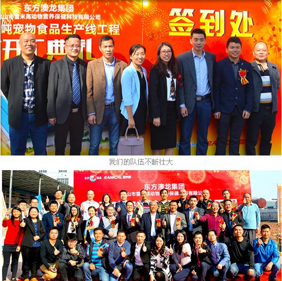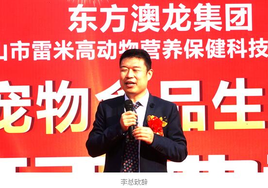 随后东方澳龙制药有限公司研发总监李成应先生发表了重要讲话。李总作为兄弟公司对雷米高10万吨宠物食品生产线开工和未来发展表示了祝贺和肯定。本次生产线的建设,雷米高经过1年半时间的筹备,由国内外5家著名工艺设备厂商进行工艺、设备方案设计和配套方案设计,经过多次评审以及外籍专家评审,最后确定由中国第一、国际一流水平的厂商提供设备,真空喷涂机、烘干机等主机选用国际最新型号,车间配套采用食品级洁净方案建设配置,设计产能将达到每年10万吨。