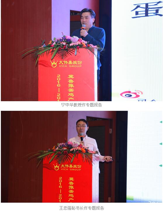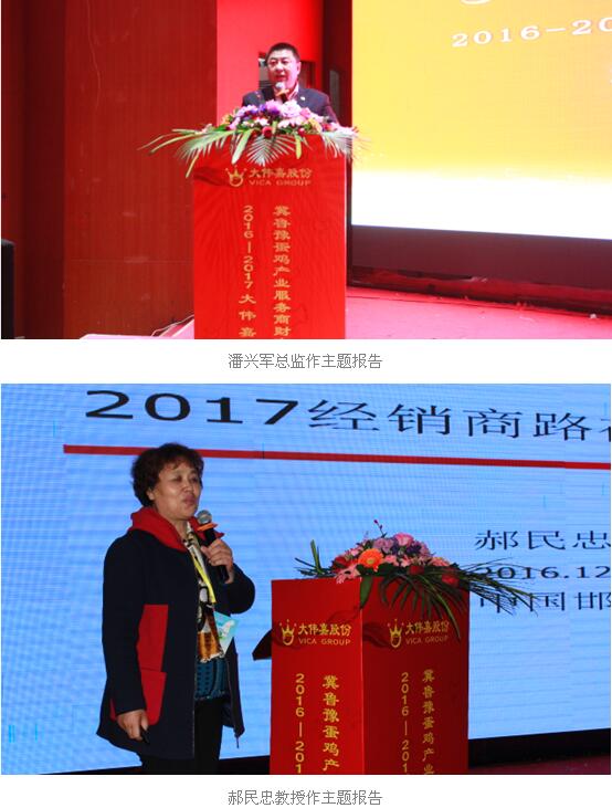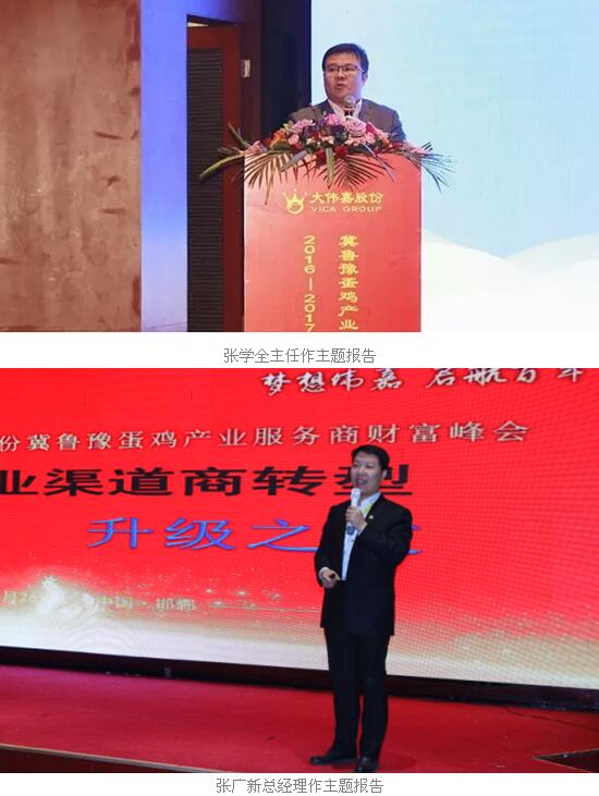 继而中国畜牧兽医学会家禽学分会理事、沈阳伟嘉牧业技术有限公司家禽动保运营总监潘兴军先生,京津冀蛋鸡产业协同发展联盟顾问、大伟嘉股份金鸡工程项目组首席顾问郝民忠教授,嘉云健康首席禽健康管理科学家、嘉云健康主任张学全先生,华裕农业科技有限公司副总经理兼技术总监李秀业先生,京津冀蛋鸡产业协同发展联盟秘书长、大伟嘉股份华北事业部总经理张广新先生分别就《未来以来,以往不再》、《2017赢在服务价值模式上》、《共享嘉云大数据,促进服务转型升级》、《蛋鸡产业发展趋势和饲养管理要点》、《蛋鸡产业渠道商转型升级之道》作了五大主题报告,围绕产业渠道商目前发展的难点、焦点问题进入深度剖析,共同探讨新趋势、新发展、新平台,共商产业变革中转型升级之道!!