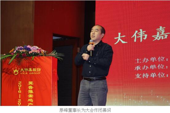 虑之贵详,行之贵力。大伟嘉股份董事长廖峰先生为大会致闭幕词,廖总指出,大伟嘉股份始终坚持把服务当做产业来做,而2016年是畜牧行业的拐点年,在大农业大畜牧业剧烈变革,蛋鸡产业快速升级的时代背景下,优先确立大伟嘉股份蛋鸡服务商市场领先地位,提升大伟嘉战略合作伙伴的服务深度及服务价值,共商产业变革中如何从传统渠道商升级为价值服务商之道!