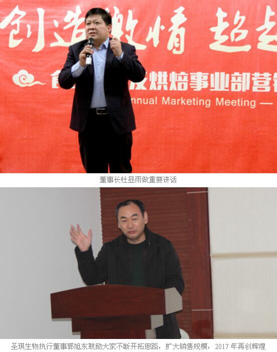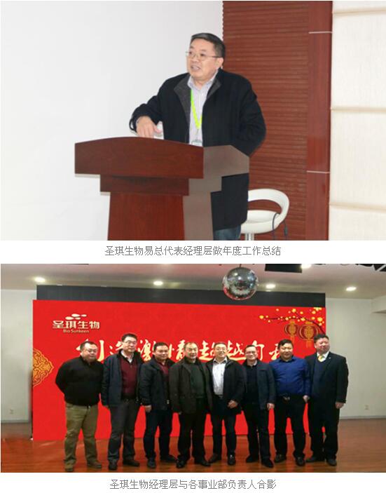 年会现场圣琪生物常务副总经理易勇代表公司经理层总结回顾了圣琪生物在2016年的发展历程,明确提出2017年公司将全面贯彻“服务营销,科技营销”的经营思路,努力加大市场结构与产品结构调整,不断进行差异化产品的开发,为市场发展打下坚实基础。易总希望公司全体员工充满创业激情,不断超越自我,实现公司发展的新跨越。