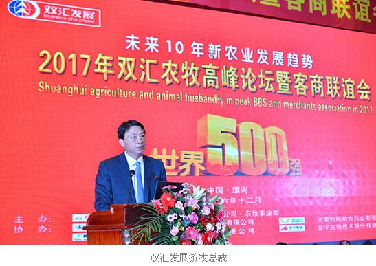 为积极应对中国新常态经济,共商农牧未来,“2017年双汇农牧高峰论坛暨客商联谊会”于2016年12月26-27日在河南漯河隆重召开。本次论坛的主题为“未来10年新农业发展趋势”,由河南双汇投资发展股份有限公司农牧事业部主办,郑州瑞高贸易有限公司、河南牧翔动物药业有限公司、普莱柯生物工程股份有限公司、金宇生物技术股份有限公司协办。双汇发展游牧总裁、正大集团姚民仆资深副董事长、国家兽用药品工程技术研究中心遇秀玲博士、南京农业大学沈其荣教授、华南农业大学毕英佐教授等业内专家围绕本次主题,共话中国农牧业发展大计!