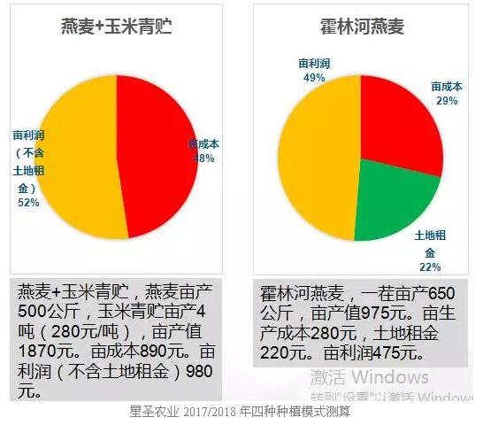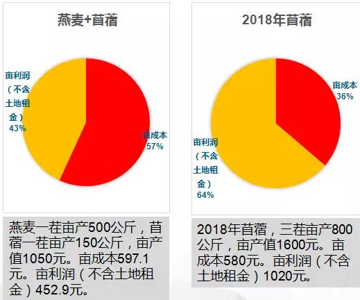 2017年种植燕麦+苜蓿亩利润(不含地租)100余元 燕麦一茬亩产500公斤,苜蓿一茬亩产150公斤,亩产值1050元,亩成本597.1元,亩利润(不含土地租金)452.9元。如果不进行土地托管,每亩地100余元利润。