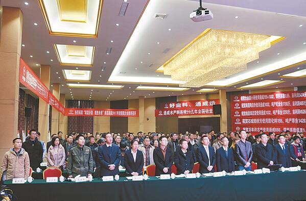 紧接着,通威股份华中战区技术总监张德洪从“通威为什么要推广膨化料、有什么优势、怎样提高效益”三个方面深度阐述了通威膨化料是如何持续提升产量,提高养殖效益的,张总的报告彻底颠覆了客户对膨化料认识的误区,打消了客户对膨化料使用中的种种疑虑,产品设计理念得到了客户的深度认同。同时,通威股份华中战区畜禽技术总监吕刚为参会嘉宾全面介绍了通威禽料在配方技术方面的领先优势以及养殖效果展示,得到了在场经销商的一致好评。
