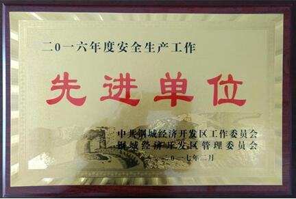 热烈祝贺佑润股份荣获2016年度钢城区安全生产先进单位