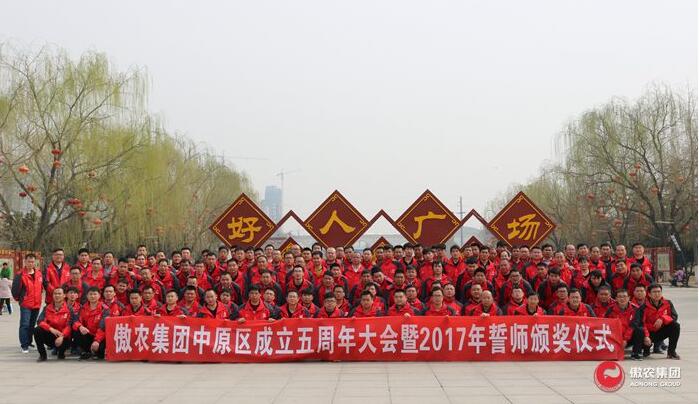 阳春三月天气新,3月3日-6日,傲农集团中原区全体战将齐聚郑州荥阳嘉盛世纪宾馆召开傲农集团中原区成立五周年大会暨2017誓师颁奖仪式。吴有林董事长应邀出席会议并做工作指导,出席会议的还有北方区总裁彭成洲,集团信息中心总经理郭靖,技术中心副总裁、研发中心总经理肖俊峰博士等。