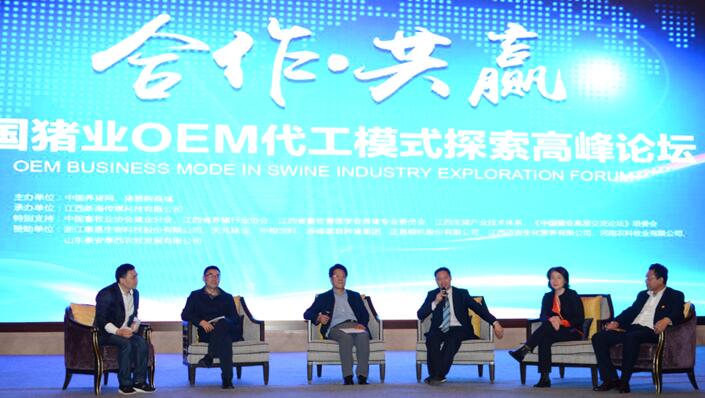 2017年3月12日,天兆猪业余平董事长受邀出席由中国养猪网、猪易购商城在江西南昌主办的中国猪业OEM代工模式探索高峰论坛,并紧贴“合作共赢”这一主题。向现场的500余位与会嘉宾及广大网友们做了《天兆饲料供应模式》的分享。