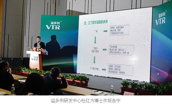 溢多利研发中心杜红方博士首先作了2017溢多利新产品发布报告,介绍了公司在无抗养殖领域中创新型酶制剂及高效植物提物的最新研发动向、成果及新产品介绍。