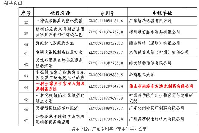 近期,广东专利奖评审委员会办公室公布第四届广东专利奖评选结果,东方澳龙“一种土霉素子宫注入剂及其制备方法”荣获专利优秀奖。同时也是本届获奖的唯一一家动保企业!