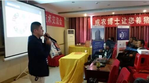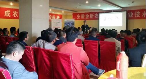 来自寿县周边的81位养殖户齐聚于此,一方面跟着主讲老师了解并认识金新农,另一方面跟着技术专家学习养猪知识。