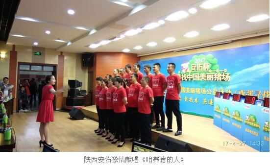 比赛在陕西安佑《咱养猪的人》的歌声中拉开序幕。一曲《咱养猪的人》,荡气回肠,风采飞扬;唱得会场热血澎湃,唱得养猪人斗志昂扬;唱出了养猪人的辛勤与汗水,唱出了养猪人的情怀与理想,更唱出了安佑志在引领养猪行业创中国强的胸怀与担当。