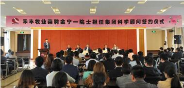 2017年5月5日,禾丰牧业于沈阳总部隆重举行荣聘中国工程院院士金宁一担任集团首位科学顾问的聘用仪式。沈阳市沈北新区区委书记金志生、副区长刘志峰,沈阳农业大学畜牧兽医学院党委书记胡建民,禾丰牧业董事长金卫东、总裁丁云峰出席仪式,与禾丰沈阳地区的高管、管理者共同见证这一重要时刻。