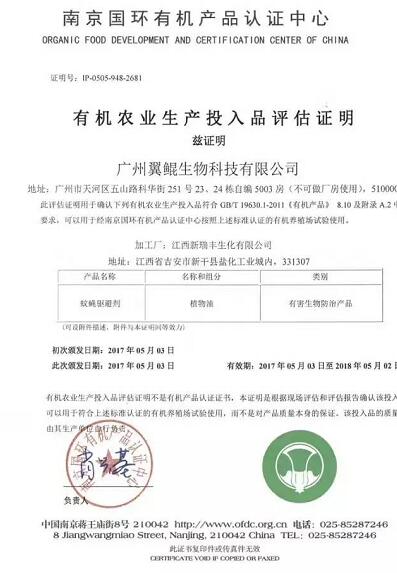 2017年5月3日,广州翼鲲生物科技有限公司的牛司令成功通过南京国环有机认证中心(国家级有机产品认证中心)的有机认证。