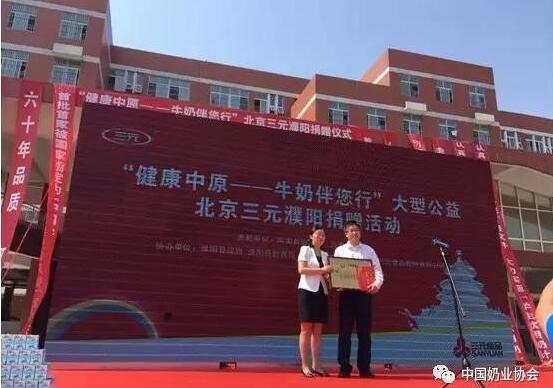 三元食品始终把回报社会作为企业发展的重要责任担当。2017年将逐步在河南、海南、贵州等区域捐赠学生奶,让更多的贫困地区孩子受益。一杯牛奶强壮一个民族,同学们是祖国的花朵,是民族的未来,是民族的希望。未来三元公司将在学生奶供应业务中继续发挥标准化、流程化的服务优势,用爱心、良心和责任心做好每一盒牛奶,积极参与国家学生饮用奶计划和营养改善计划,让更多的孩子喝上学生奶,与大家一起来守护青少年的健康成长。