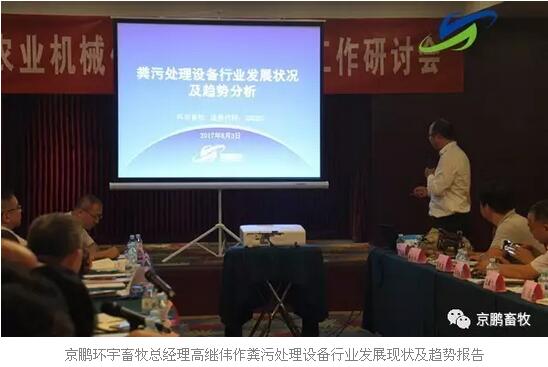 2017年8月3日,中国农业机械化协会畜牧分会在北京召开了工作研讨会。农业部农业机械试验鉴定总站总工程师仪坤秀、中国农业机械化协会副会长杨林、中国奶业协会副秘书长邓荣臻、中国农业大学李保明教授、杨敏丽教授等领导和专家出席会议,京鹏环宇畜牧等畜牧分会副主任委员单位及部分大型畜牧农机装备企业的代表参加会议。京鹏环宇畜牧总经理高继伟、总经理助理宁宗拔等参加了会议,高总在会上作了粪污处理设备行业发展现状及趋势的相关主题报告。农机鉴定总站鉴定一室金红伟处长主持了本次研讨会。