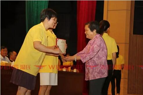 北英慈善基金会终身名誉会长梁焕珍女士为获奖者颁奖