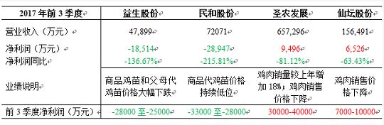 目前终端市场需求仍未回暖,4季度市场持续进行调节,以期供需平衡。10月份鸡肉、毛鸡及鸡苗价格较低,11-12月份市场回暖程度有限,2017年全年,种鸡企业大幅亏损已成定局;一体化屠宰企业尚可维持盈利,但利润亦将大幅下降。